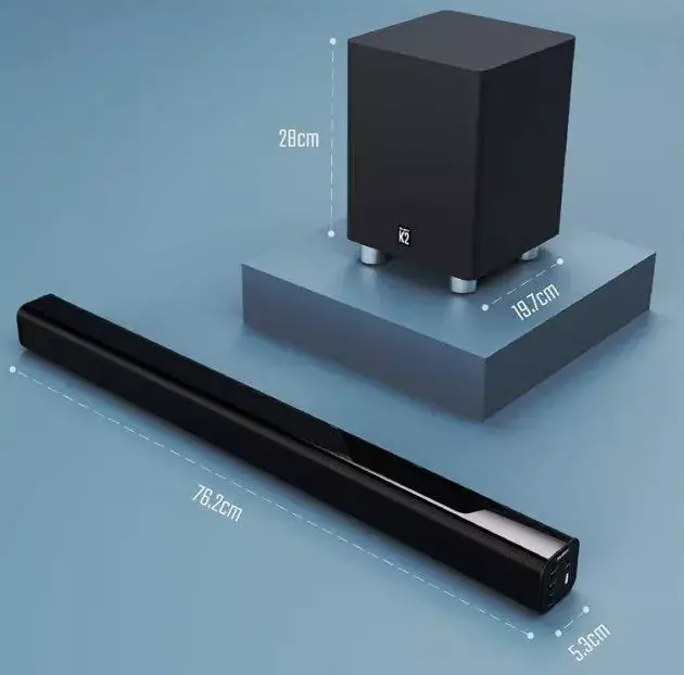 Саундбар K2 – это тонкая звуковая панель с беспроводным сабвуфером, идеально подходящая под телевизор или на стол. Используйте кнопки на боковой стороне звуковой панели или пульте дистанционного управления, чтобы регулировать громкость, настраивать эквалайзер, источник и многое другое. Идеальная звуковая панель для телевизора или компьютера, которая наполнит вашу комнату и погрузит вас в звук высокой четкости в вашем доме.