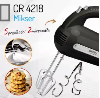 Элегантный кухонный миксер мощностью 300 Вт. Незаменим для всех, кто печет торты и печенье. Это позволяет использовать 5 различных скоростей в зависимости от типа готовящейся пищи. Это делает его пригодным как для смешивания муки с другими ингредиентами, так и для взбивания яиц. При необходимости вы также можете использовать функцию Turbo. Робот практичен и прочен, поэтому его можно использовать в течение длительного периода времени без риска поломки. Мощность: 300 Вт Максимальная мощность 800 Вт 5 скоростей Кнопка Turbo Кнопка извлечения Набор миксеров и лопаток из нержавеющей стали Функции Смешивание Пена для взбивания Замешивание теста Любителям кулинарии, а особенно выпечке, стоит приобрести миксер CAMRY CR 4218. Благодаря ему мы можем быстро приготовить массу для торта или печенья. Это еще и интересная идея для подарка, ведь она не только функциональна, но и стильно смотрится. Благодаря элегантной черной отделке, прочному корпусу и элементам из нержавеющей стали этот смеситель будет хорошо смотреться на любой кухне. Смеситель - необходимое кухонное оборудование Сегодня никто не представляет кухню без смесителя. Это удобное приспособление, которое поможет быстро взбить яйца, смешать масло с сахаром и соединить ингредиенты для теста. Без миксера такие действия отняли бы у нас гораздо больше времени, много чаш и инструментов, а также потребовали бы много сил в наших руках. Предлагаемый нами миксер - это способ сэкономить время и быстро приготовить ингредиенты для любимой выпечки и блюд. Аппарат с максимальной мощностью 800 Вт может быстро справиться с даже большим количеством теста. Как известно, выпечка требует большой точности, ведь даже самая маленькая ошибка может привести к грандиозной катастрофе. Вот почему наш миксер оснащен пятью скоростями, которые можно удобно регулировать в зависимости от количества и типа смешиваемых ингредиентов. Иногда деликатные продукты нужно аккуратно перемешать. Аксессуары и принадлежности Удобные и профессиональные устройства, которые мы используем при приготовлении блюд на кухне, позволяют значительно ускорить ваши действия. Мы также ценим многофункциональность покупаемых товаров. В комплекте со смесителем вы найдете набор мешалок и лопаток из нержавеющей стали. Благодаря высокому качеству добавок мы можем быстро взбивать яйца, комбинировать сухие и влажные ингредиенты, а также замешивать песочное тесто или тесто для пиццы. Функция Turbo позволяет быстро и точно комбинировать смешанные ингредиенты, что значительно сокращает время приготовления блюд или выпечки. Устройство также легко чистить. Кнопка извлечения значительно упрощает удаление венчиков и крючков. Просто нажмите на нее, и обе мешалки выскочат из корпуса. Если на миксер попали брызги, просто протрите его мягкой тканью, смоченной теплой водой. Сильные или засохшие загрязнения можно удалить водой с небольшим количеством жидкости для мытья посуды.