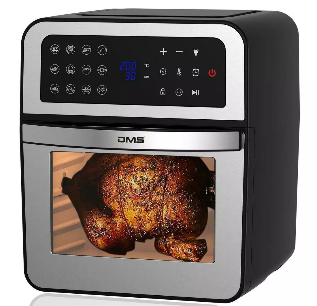 Фритюрница с горячим воздухом и конвекционная печь в одном, многофункциональное устройство HF-12 от DMS, представляет собой практичное и компактное устройство для студентов, небольших семей или людей, которые хотят сэкономить место и питаться здоровой пищей.
