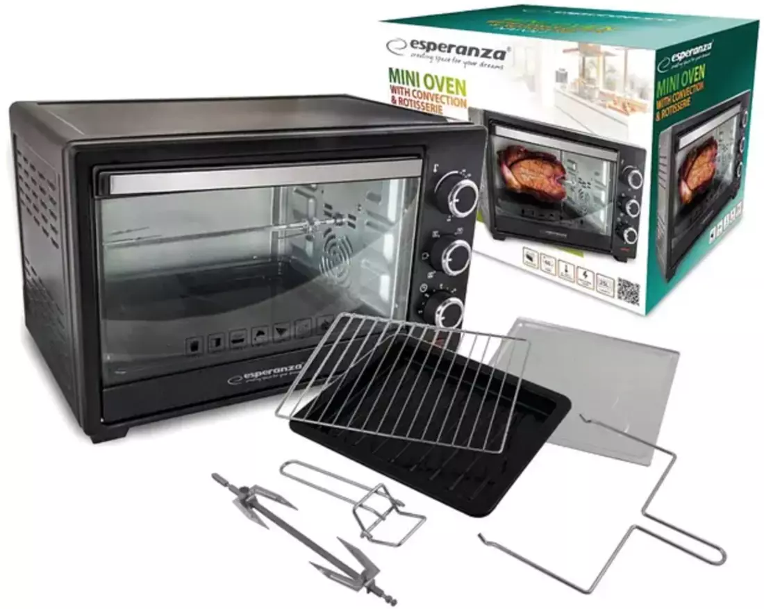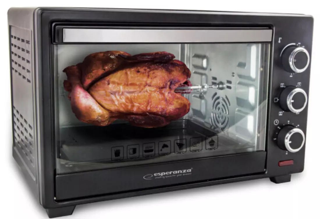 Еектрична духовка Esperanza Napoli EKO006 одна з найбільш функціональних і зручних технічних пристосувань для кухні. Ця річ просто незамінна, коли необхідно за максимально короткі терміни розморозити шматок м'яса, що закам'янів, або розігріти вечерю після втомливого робочого дня. Завдяки дверцятам зі скляним вікном, зручно стежити за процесом приготування.