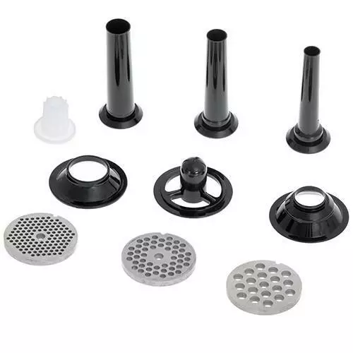 - Ситечко 5 мм - средняя сетка для измельчения мяса для котлет, котлет, котлет, фрикаделек и начинок для пельменей, блинов и лепешек. Используя это ситечко, вы также можете измельчать овощи, твердый сыр и даже орехи.
