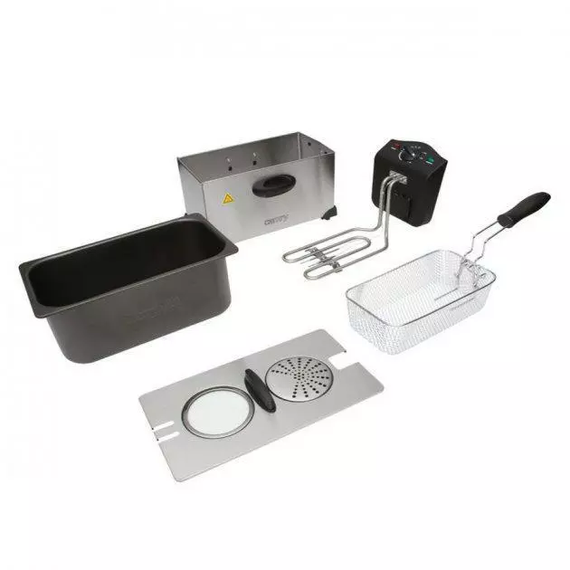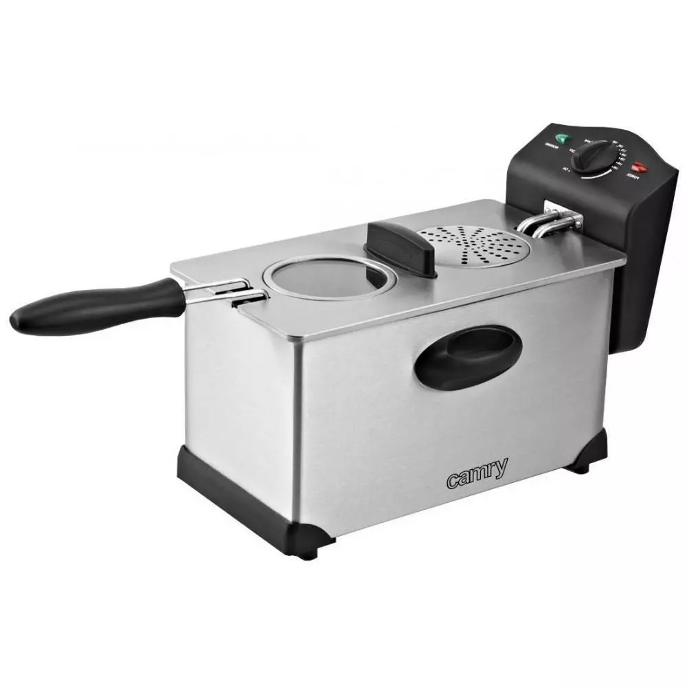 Фритюрница Camry CR 4909 изготовлена из нержавеющей стали. Ее объем составляет 3 литра, а мощность – 2000 Вт. Специальная зона охлаждения препятствует подгоранию продуктов, сохраняет их хрустящую корочку, вкус и аромат. Термостат позволяет легко регулировать температуру. Максимальный нагрев составляет 190 ºC. Встроенный специальный фильтр защищает от излишнего пенообразования, перелива и разбрызгивания масла, что делает эксплуатацию прибора комфортнее и безопаснее. Готовить с такой фритюрницей легко и безопасно.
