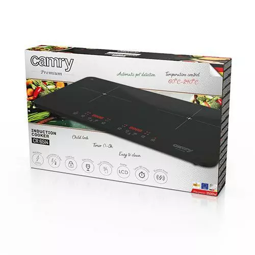 Двоконфорочна індукційна плита з LCD дисплеєм є необхідним обладнанням для кухні. Його можна використовувати для розігрівання або приготування страв, які вимагають одночасного використання двох каструль або сковорідок. Плита CR 6514 може використовуватися як аварійний варіант, коли основна плита недоступна, так само вона може стати постійним пристосуванням у дачній оселі чи навіть на кухні. Духовка дозволяє регулювати потужність нагріву двома способами, встановлюючи бажану температуру або потужність. Також має функції підігріву та швидкого приготування. Оснащений двома зонами нагріву діаметром 220 мм і 10 рівнями нагріву. Плита має захист від дітей.