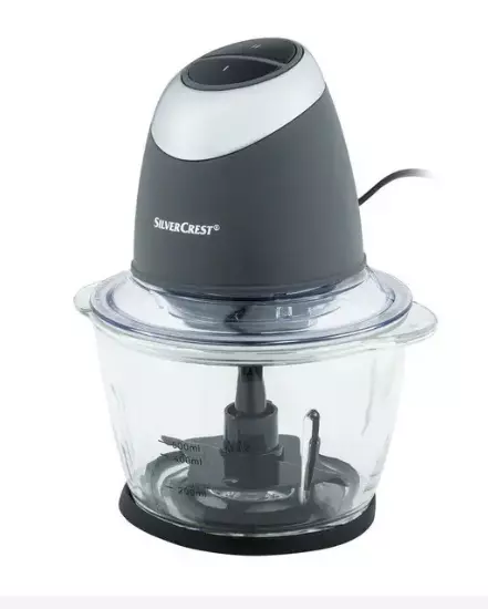 Универсальный измельчитель SILVERCREST предназначен для овощей, зелени, лука, орехов; подходит также для измельчения льда (Ice Crush) и для взбивания сливок.