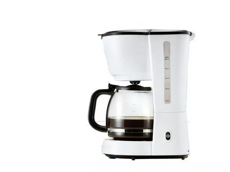Кавоварка SILVERCREST® SKMK 1000 A1 (чорна) приготування до 10 чашок кави Ємність резервуара для води: макс. 1,38 л Місткість кавника: макс. Термостійка плита з антипригарним покриттям Включаючи скляний чайник і чайну ложку Перемикач вкл / викл з індикатором включення Бак для води з індикатором обсягу З практичною намотуванням кабелю Споживана потужність: 1000 Вт