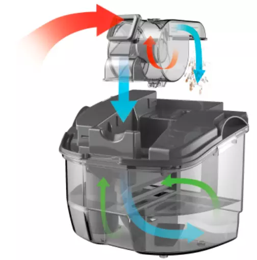 - Dual Filtration System – cистема двойной фильтрации – сочетает в одном объеме мощь циклона и водную фильтрацию.