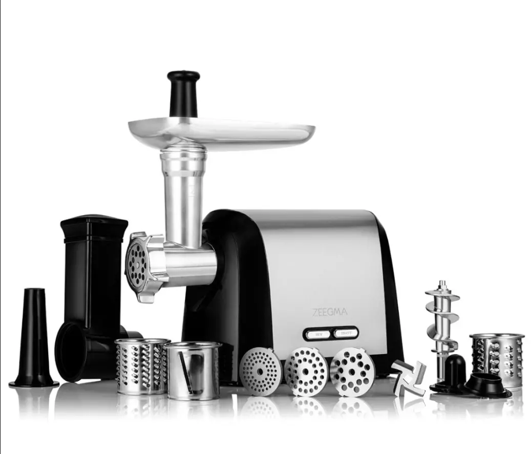 Почему стоит сделать ставку на наше предложение? Мясорубка Zeegma Molen Chef — это качественное многофункциональное устройство. Высокая мощность двигателя (1200 Вт) и 3 режущих диска позволяют легко приготовить ингредиенты для ваших любимых блюд. Задняя передача — это функция, позволяющая легко удалять мусор при очистке устройства.