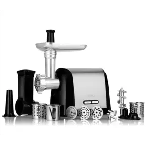 Электрическая мясорубка включает в себя широкий набор аксессуаров для различных целей. 3 режущих диска, 3 вида барабанов и мясные добавки позволяют перемалывать мясо, шинковать овощи, измельчать твердый сыр, орехи, делать колбаски. Практичный отсек для хранения аксессуаров позволяет поддерживать порядок во время работы.