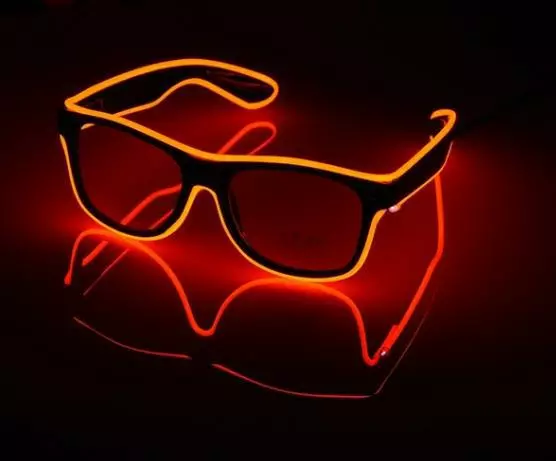 Данные очки оснащены светодиодной неоновой полоской и маленьким удобным блоком питания для двух обычных батареек AA ( пальчиковые 1,5V ) с переключателем режимов свечения. Свечение происходит в трех режимах: обычный статический, вспышка, flash.