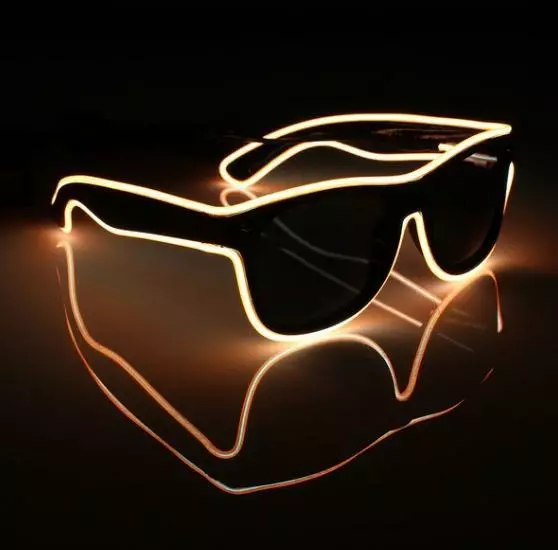 Данные очки оснащены светодиодной неоновой полоской и маленьким удобным блоком питания для двух обычных батареек AA ( пальчиковые 1,5V ) с переключателем режимов свечения. Свечение происходит в трех режимах: обычный статический, вспышка, flash.