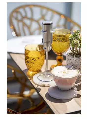 Спінювач молока, що дає змогу приготувати смачну молочну піну за кілька секунд, ідеальний як домішка до ароматної кави, какао та гарячого шоколаду. Це дуже гарний вибір для прихильників смачного капучино, макіато або чаю матя. Постачається з елегантною підставкою для піноутворювача.