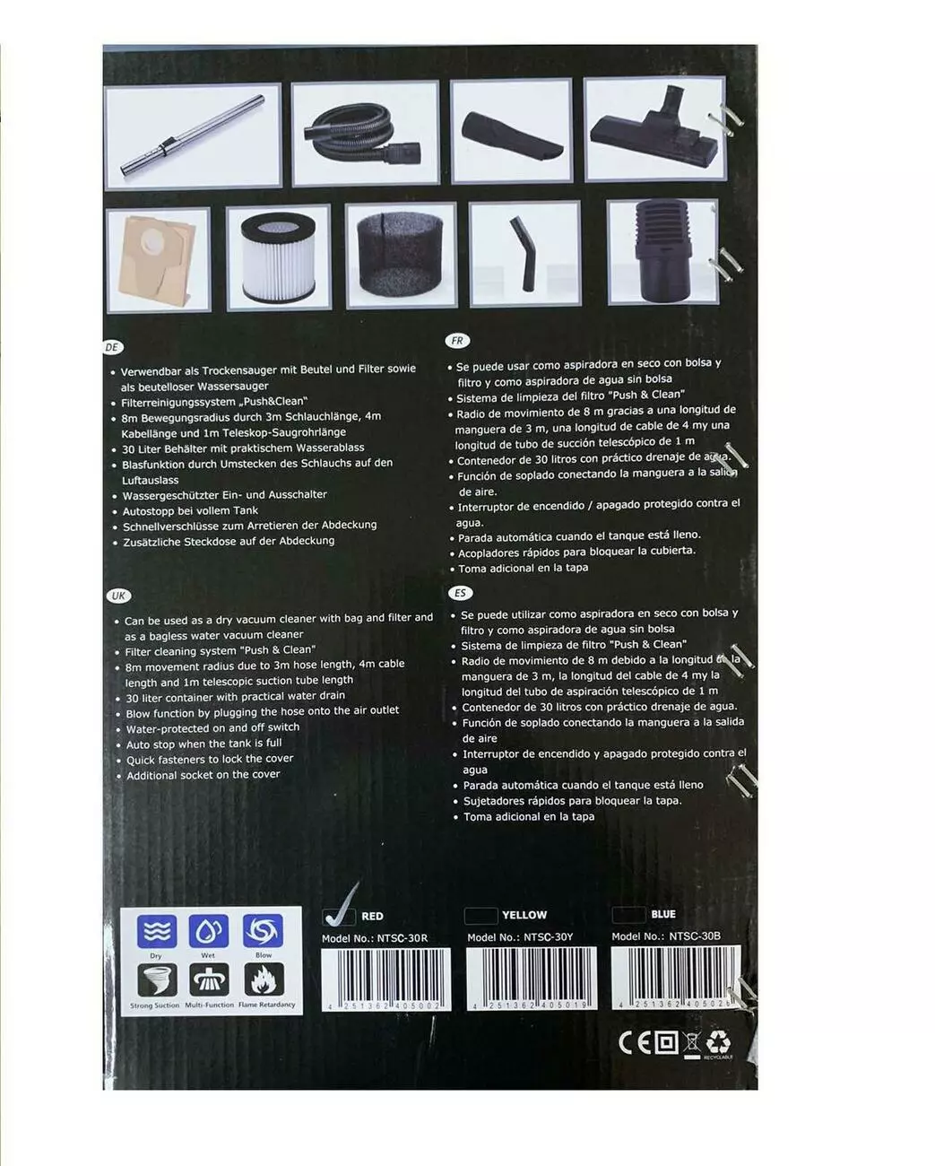 Пылесос 4в1 DMS NTSC-30 Red с розеткой 220Вт на корпусе