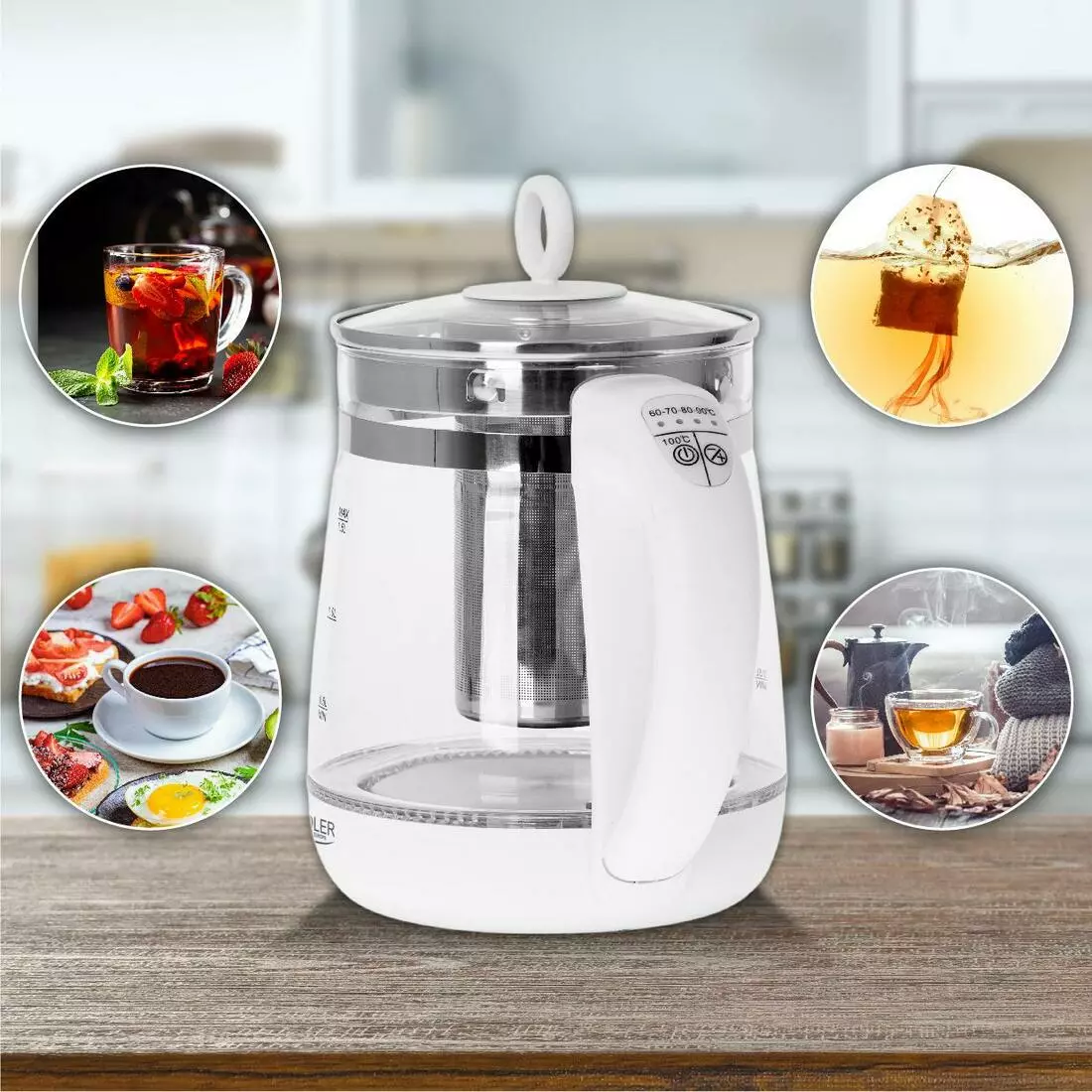 Скляний чайник Adler AD 1299 1,5 л із заварювальним блоком і регулятором температури
