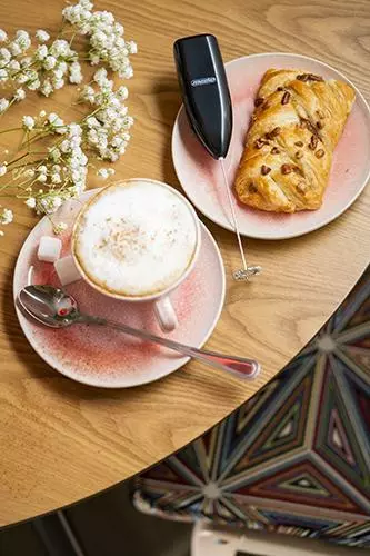 Спінювач молока, який дозволяє за лічені секунди приготувати смачну молочну піну, ідеальну добавку до ароматної кави, какао та гарячого шоколаду. Це дуже хороший вибір для любителів смачного капучіно, маккіато або чаю матча.