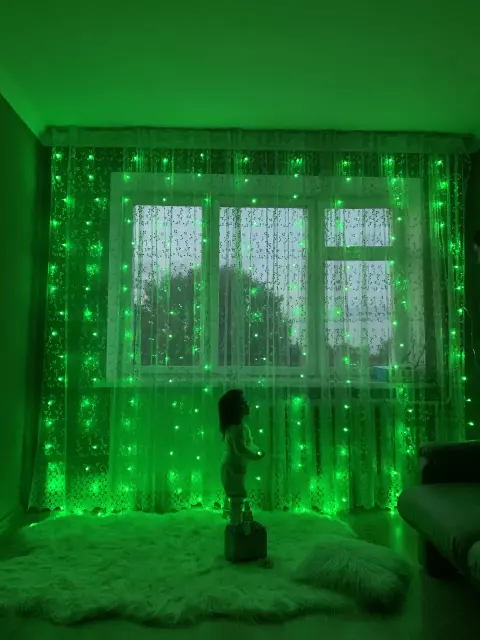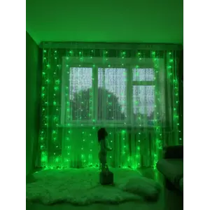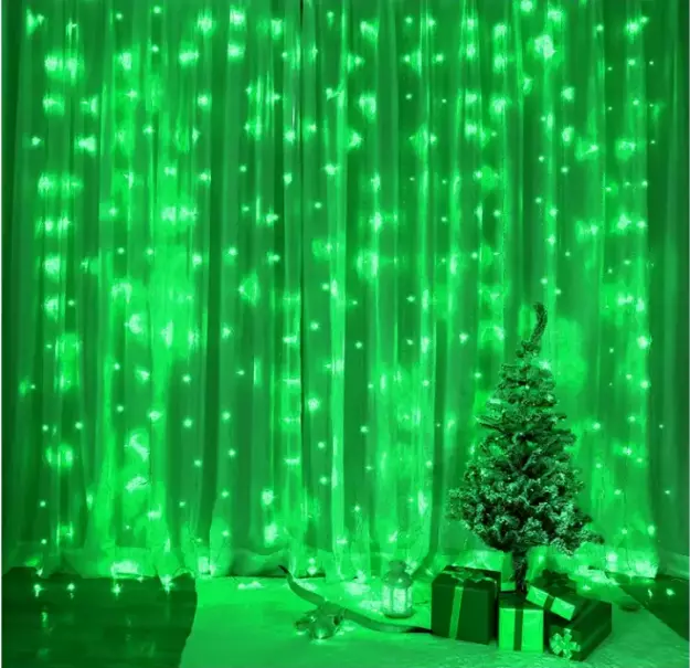 Светодиодная гирлянда штора занавес "Бахрома" 3*3м 300LED 220V G зеленый пульт ДУ