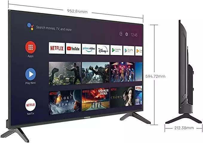 Smart TV: Android 9.0 с Netflix, Prime Video, Disney+, YouTube и Google Playstore для загрузки собственных приложений и других потоковых сервисов.