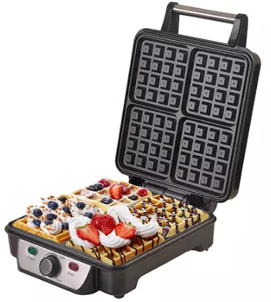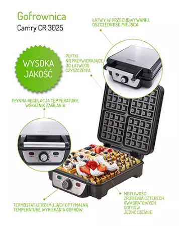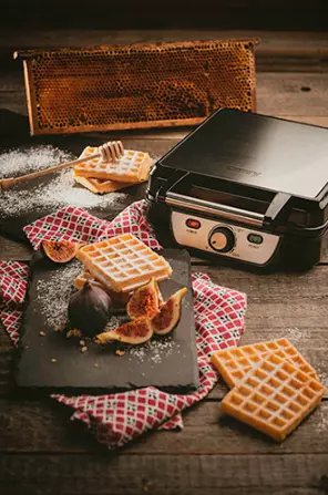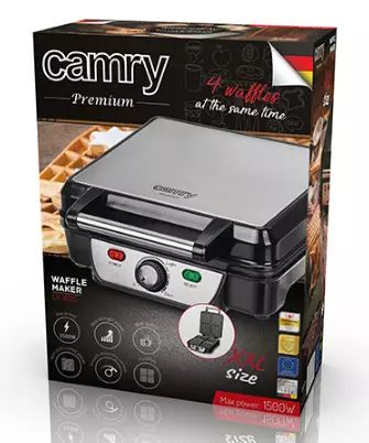 Элегантная вафельница мощностью 1500 Вт, оснащенная термостатом. Идеально подходит для приготовления хрустящих вафель. Он готовит одновременно 4 вафли. Он оснащен пластинами с антипригарным покрытием, что упрощает очистку. Его также очень легко транспортировать благодаря возможности стоять вертикально. Характеристики: Номинальная мощность: 1100 Вт Максимальная мощность: 1500 Вт Плавный контроль температуры Пластины с антипригарным покрытием для легкой очистки Термостат - контролируемый процесс выпечки Стоять вертикально, компактно хранить и экономить место Индикатор готовности Индикатор питания