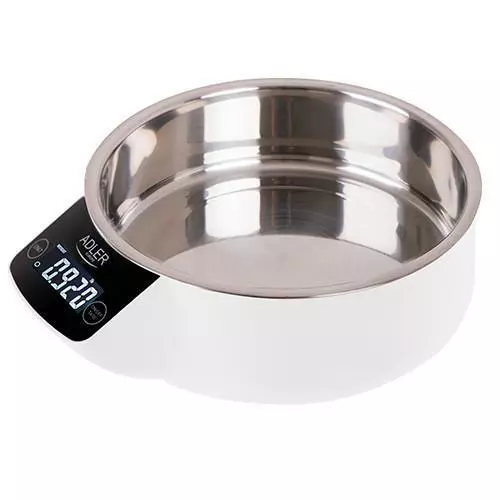 Електронні кухонні ваги з максимальним навантаженням 5 кг і точністю 1 гр. Надзвичайно допомагає при приготуванні страв, що вимагають строго певних пропорцій продуктів. Він дозволяє точно зважувати навіть невеликі кількості продуктів. Він відповідає потребам людей, які піклуються про розмір їжі з міркувань здоров'я. Він має можливість автоматичного або ручного вимкнення та чіткий дисплей. Естетичну миску з нержавіючої сталі легко підтримувати в чистоті. Крім того, ваги мають можливість підрахувати об’єм води та молока, що зручно, коли відсутня мірна чашка.