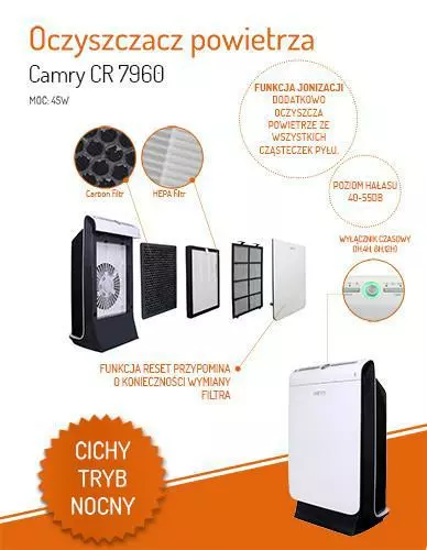 Воздухоочиститель Camry CR 7960, 45w, производительность 170 м³ / ч